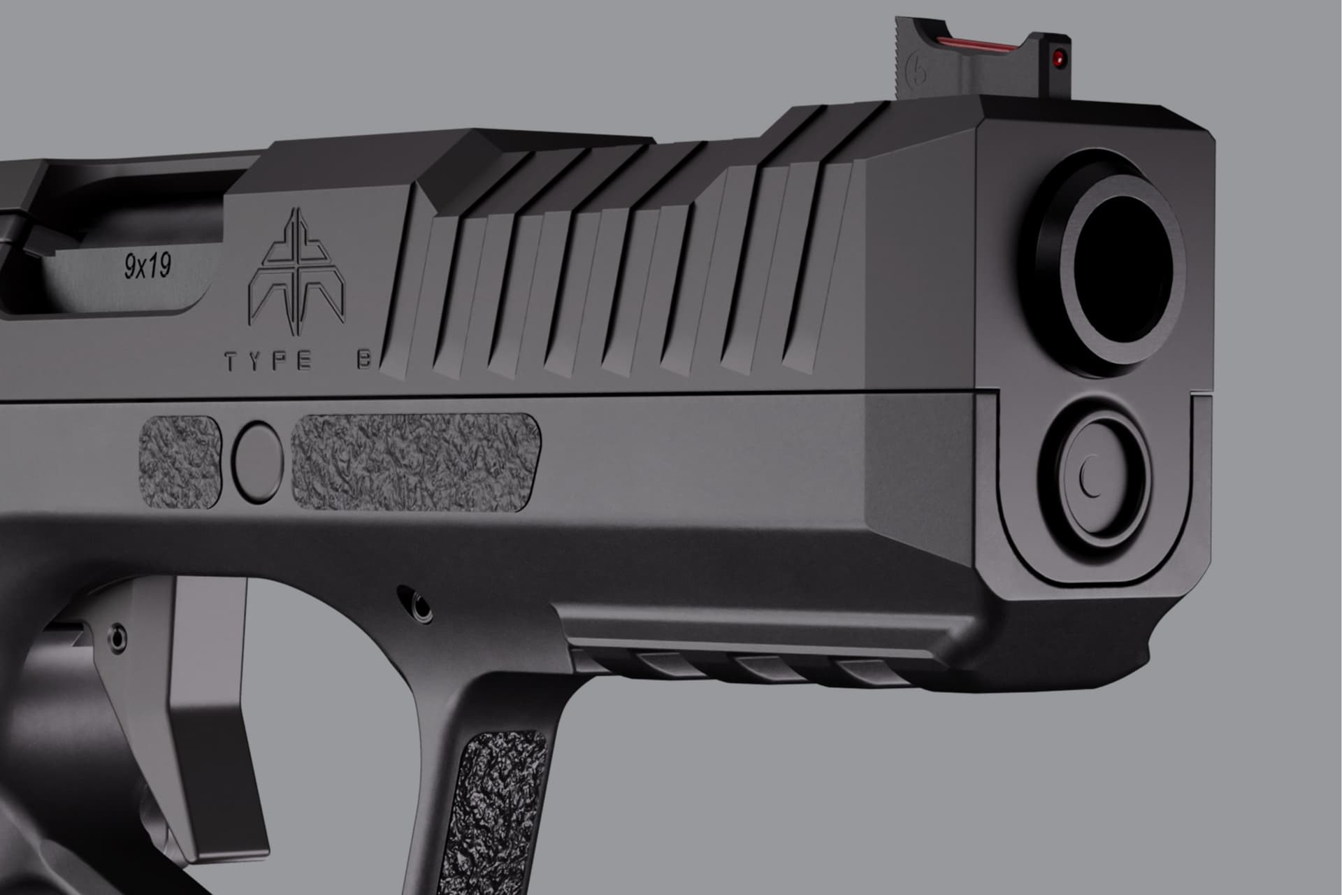 Its low bore axis and ergonomic design help with natural aiming and quick follow-up shots. The modular grip system allows for easy customization to suit individual preferences, ensuring a comfortable and secure hold. Built with high-quality materials, the Type B is designed for durability and reliable performance in various conditions. Whether at the range or in the field, the Type B delivers consistent results with every shot.