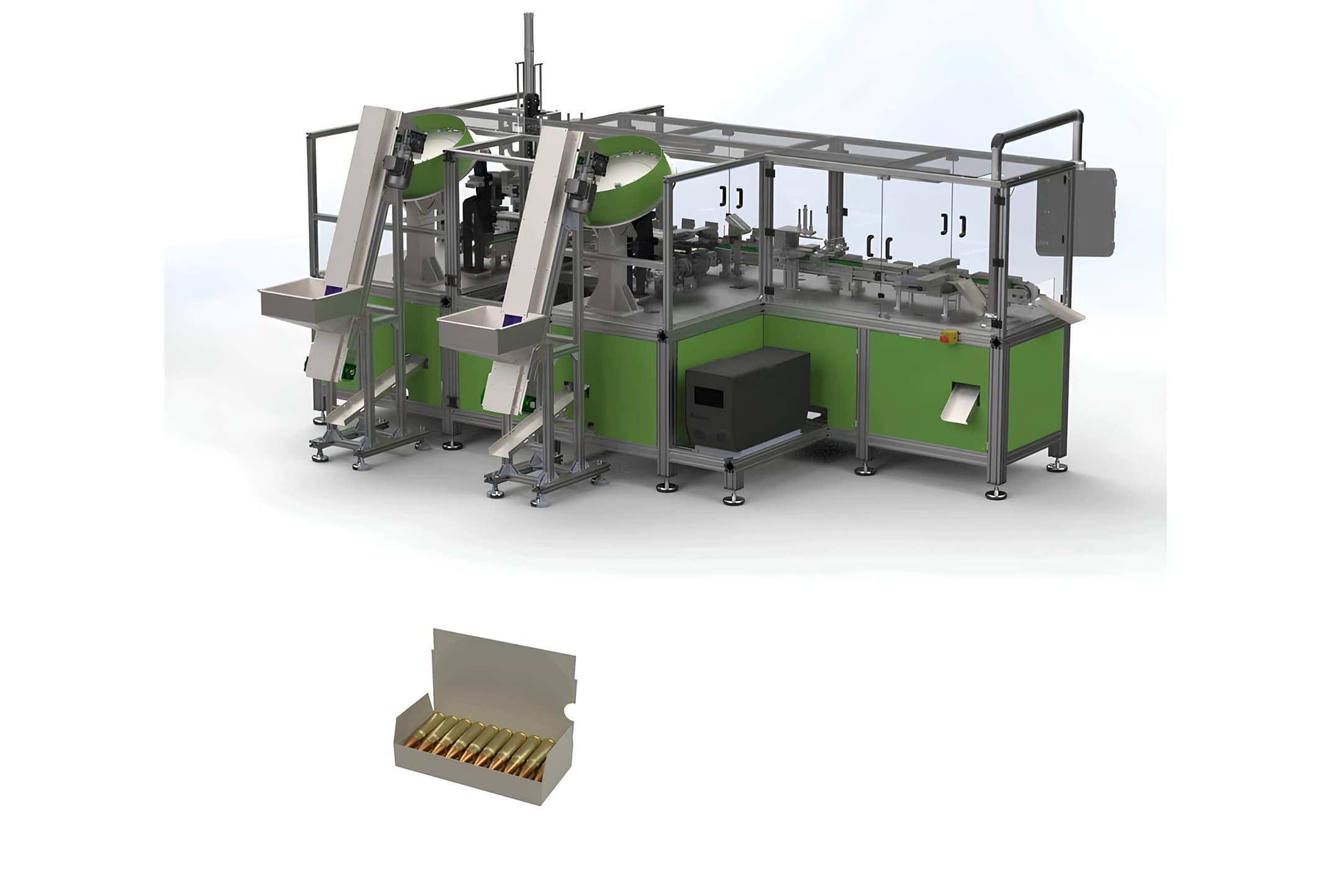 Ammunition Machinery Production, Automation,Belt Linking, Shotgun shell, Tip marking,Loading&Assembly, Priming, Packaging, Packing, Stacker Varnishing, Sealing, Lacquering, RoboticsVisual inspection, Camera inspection,