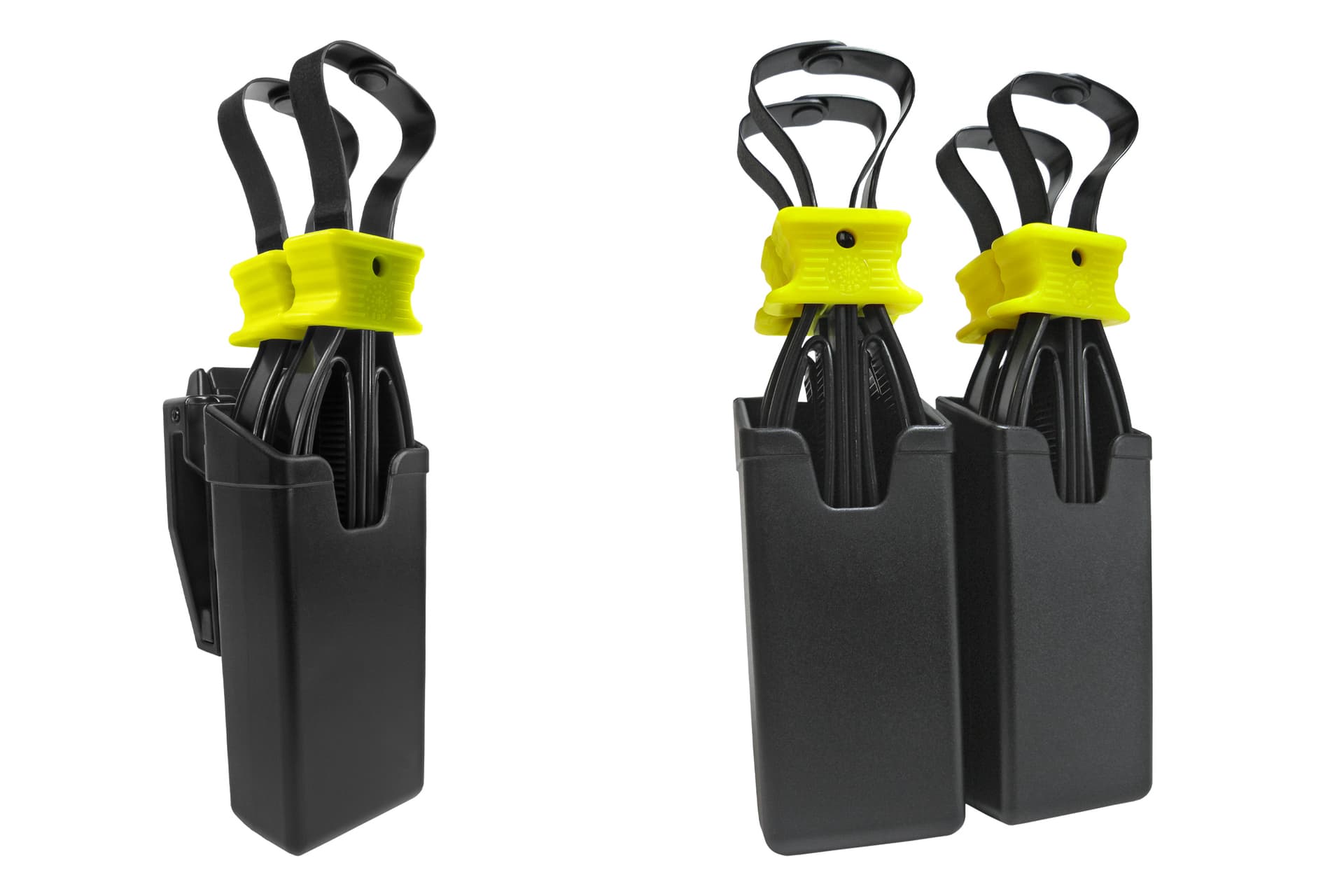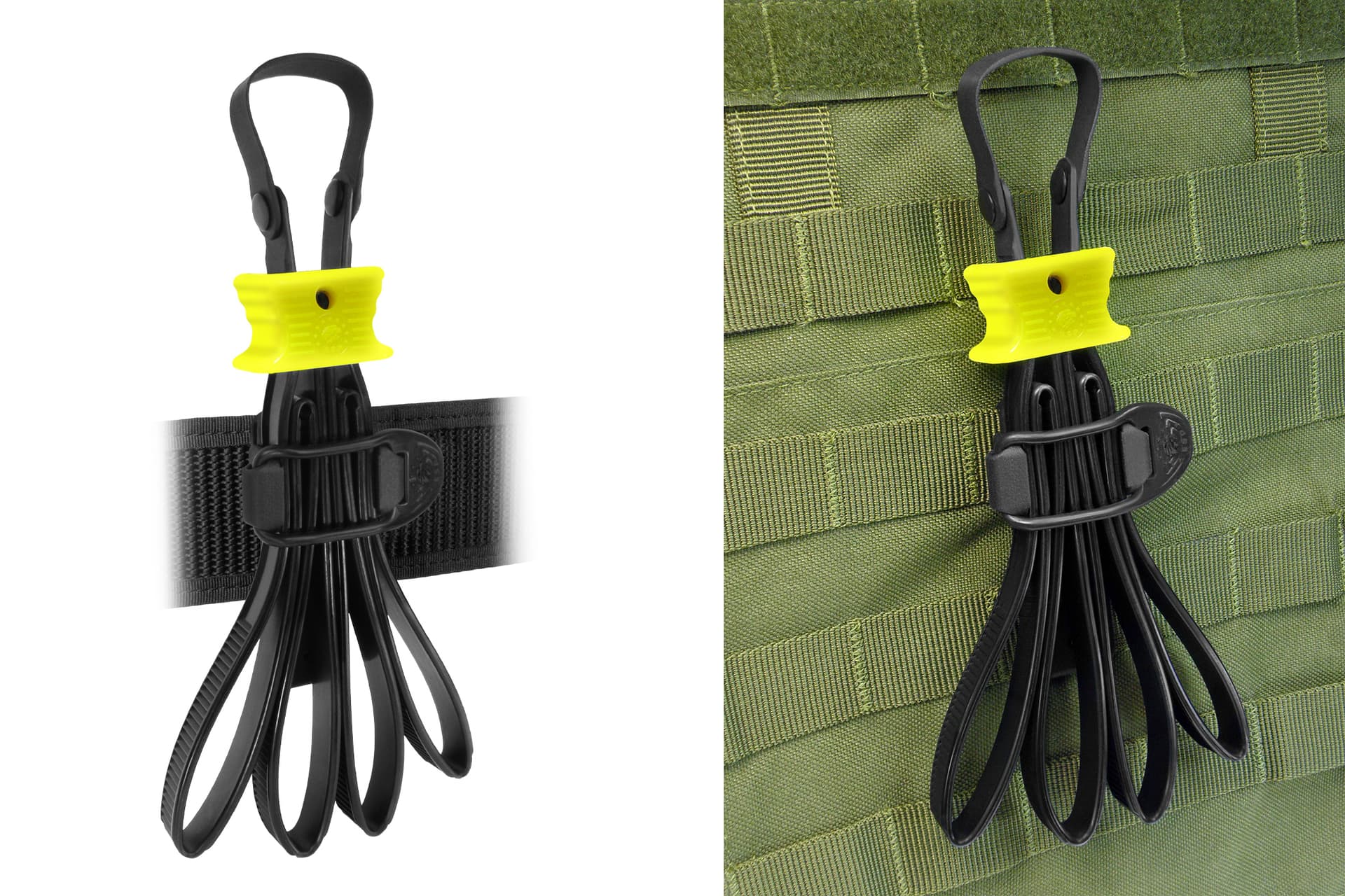 Die zum Patent angemeldete Konstruktion sowie drei konische Biegestellen an jeder Öse erhöhen die Funktionalität und Langlebigkeit. Erhältlich in Schwarz und Gelb.