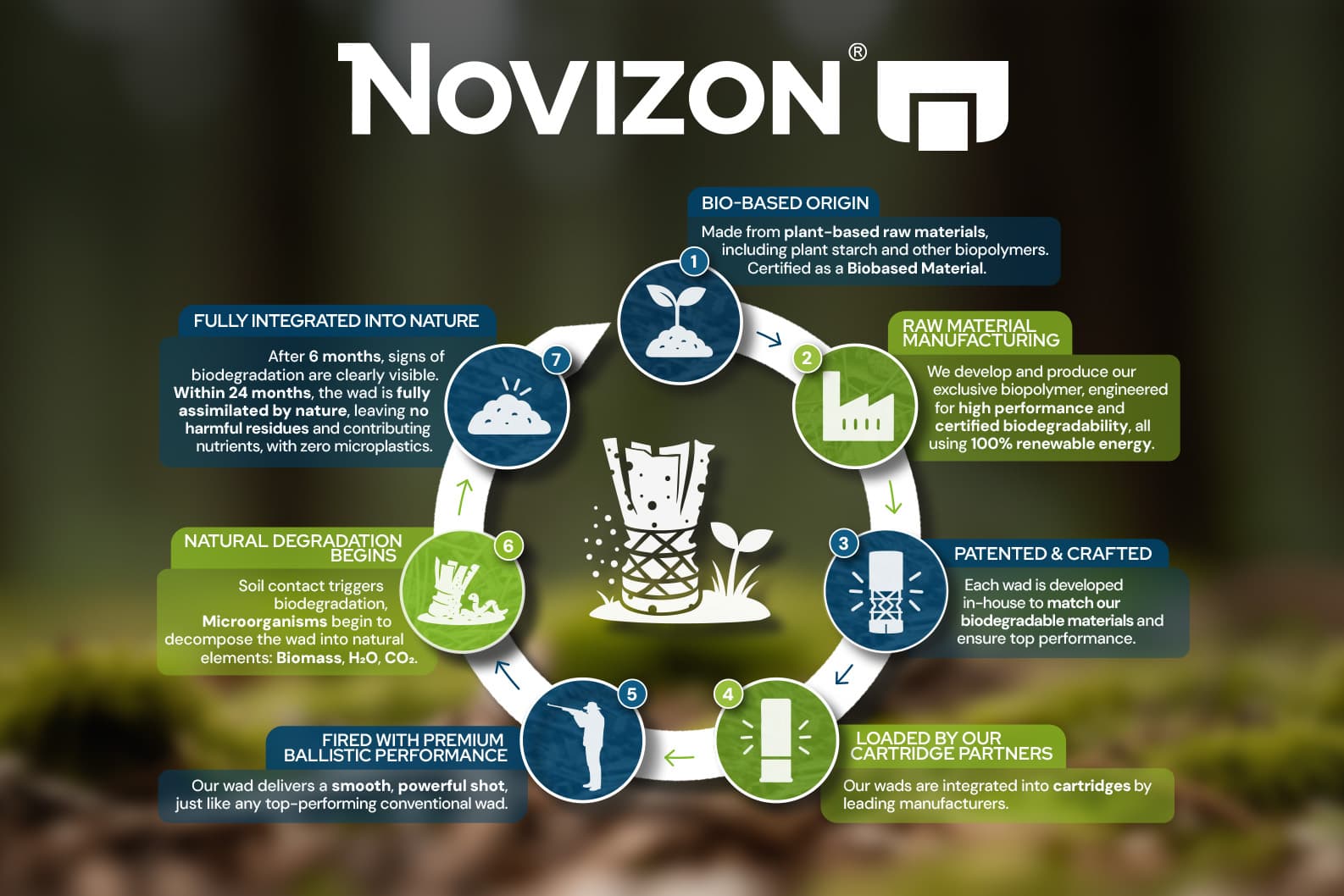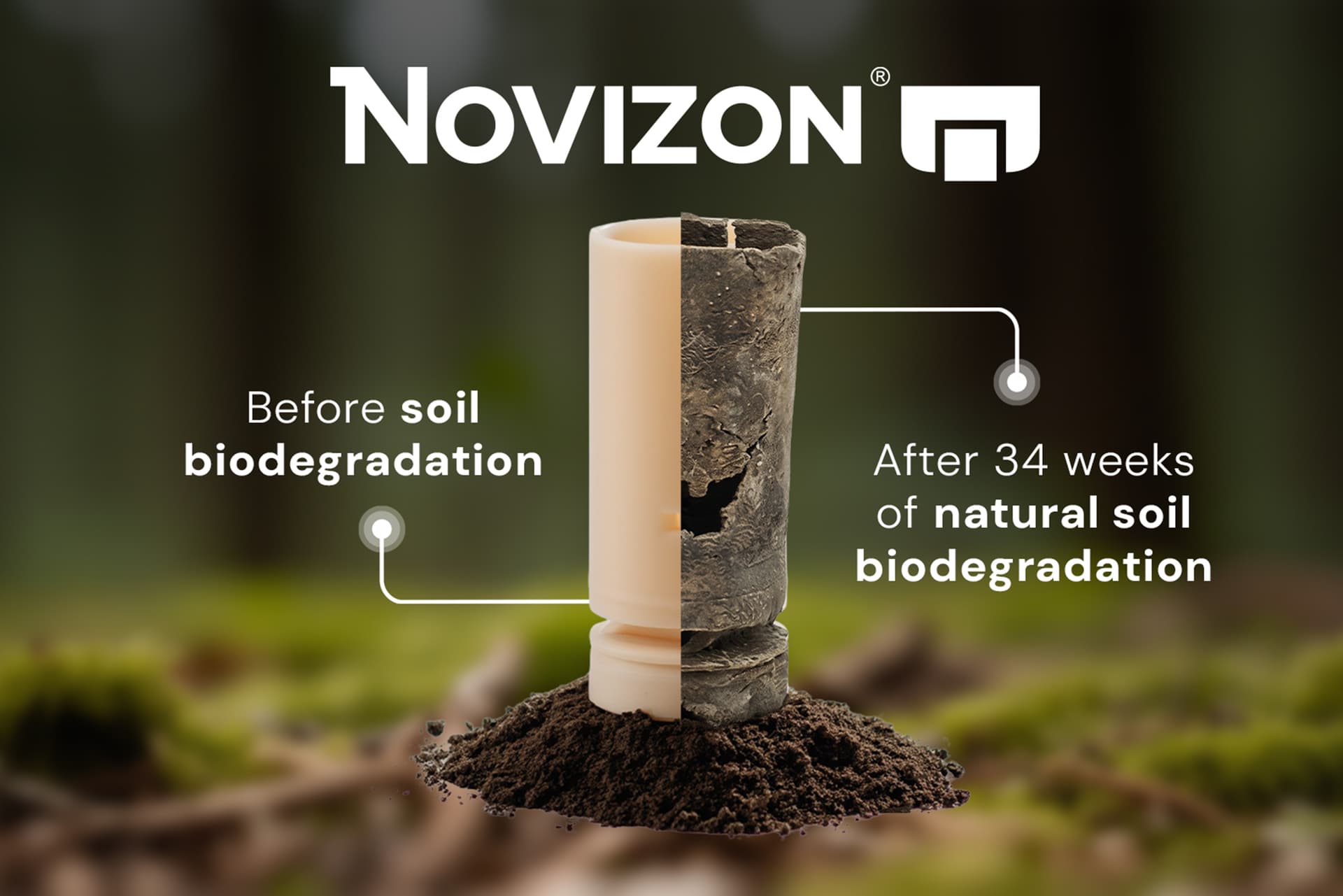 - Zertifiziert bodenbiologisch abbaubar NOVIZON Treibspiegel sind von TÜV AUSTRIA mit „OK biodegradable SOIL“ zertifiziert. Sie bauen sich im Boden innerhalb von zwei Jahren vollständig ab und hinterlassen keine schädlichen Rückstände, sodass Jagdreviere frei von Kunststoffverschmutzung bleiben.
