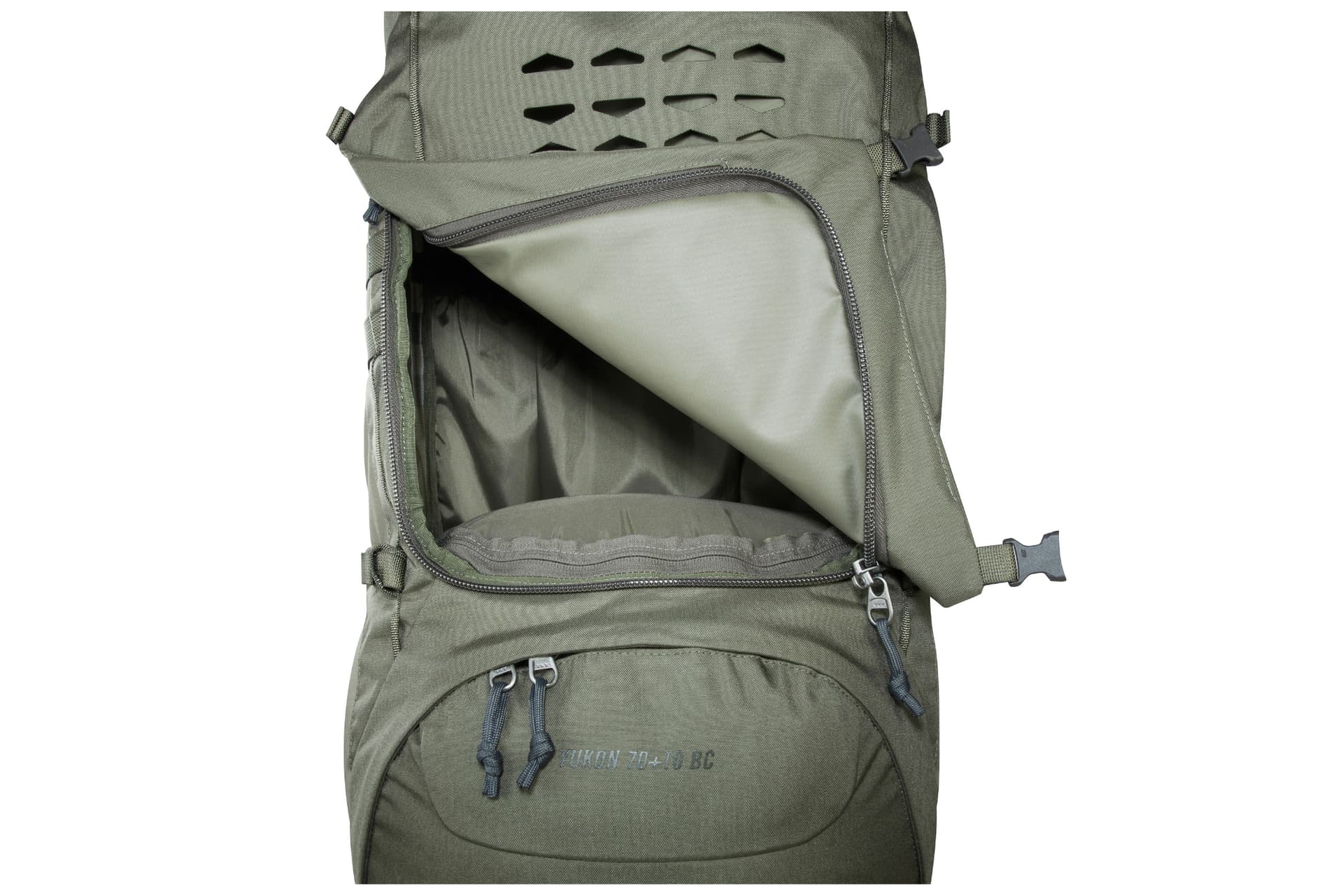 Individuell konfigurierbarer Trekkingrucksack aus robustem CORDURA®-Material. Der Yukon 70+10 BC ergänzt Tatonkas Bushcraft-Kollektion um einen großvolumigen Trekkingruckack, dessen leistungsfähiges V2-Tragesystem für ein Gewicht bis 25 Kilogramm optimiert ist. Das modulare, Molle-kompatible Befestigungssystem auf der Front und das Molle-System an den Seiten und auf einer Hüftflosse ermöglichen die Ergänzung mit Zusatztaschen oder anderer Ausrüstung aus dem Bushcraft-Sortiment von Tatonka. Der Deckel des Rucksacks lässt sich abnehmen und als Fronttasche in die Schultergurte einhängen oder auch separat als Umhängetasche nutzen. Zu der umfangreichen Ausstattung gehört auch eine Trinksystemvorbereitung und eine olivfarbene Regenhülle. Der Yukon 70+10 BC ist PFC/PFAS-frei imprägniert. ...
