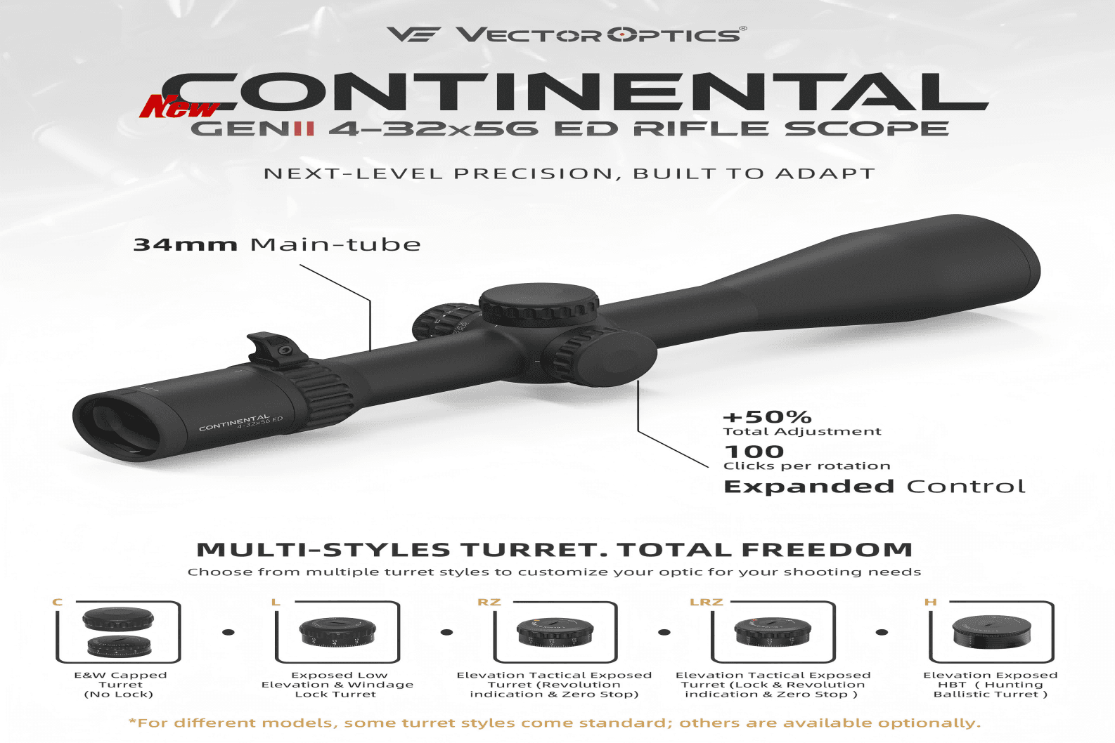 Designed for long-range precision shooting, the Continental GENII 4-32x56 ED Rifle Scope delivers reliable performance for demanding shooting scenarios.