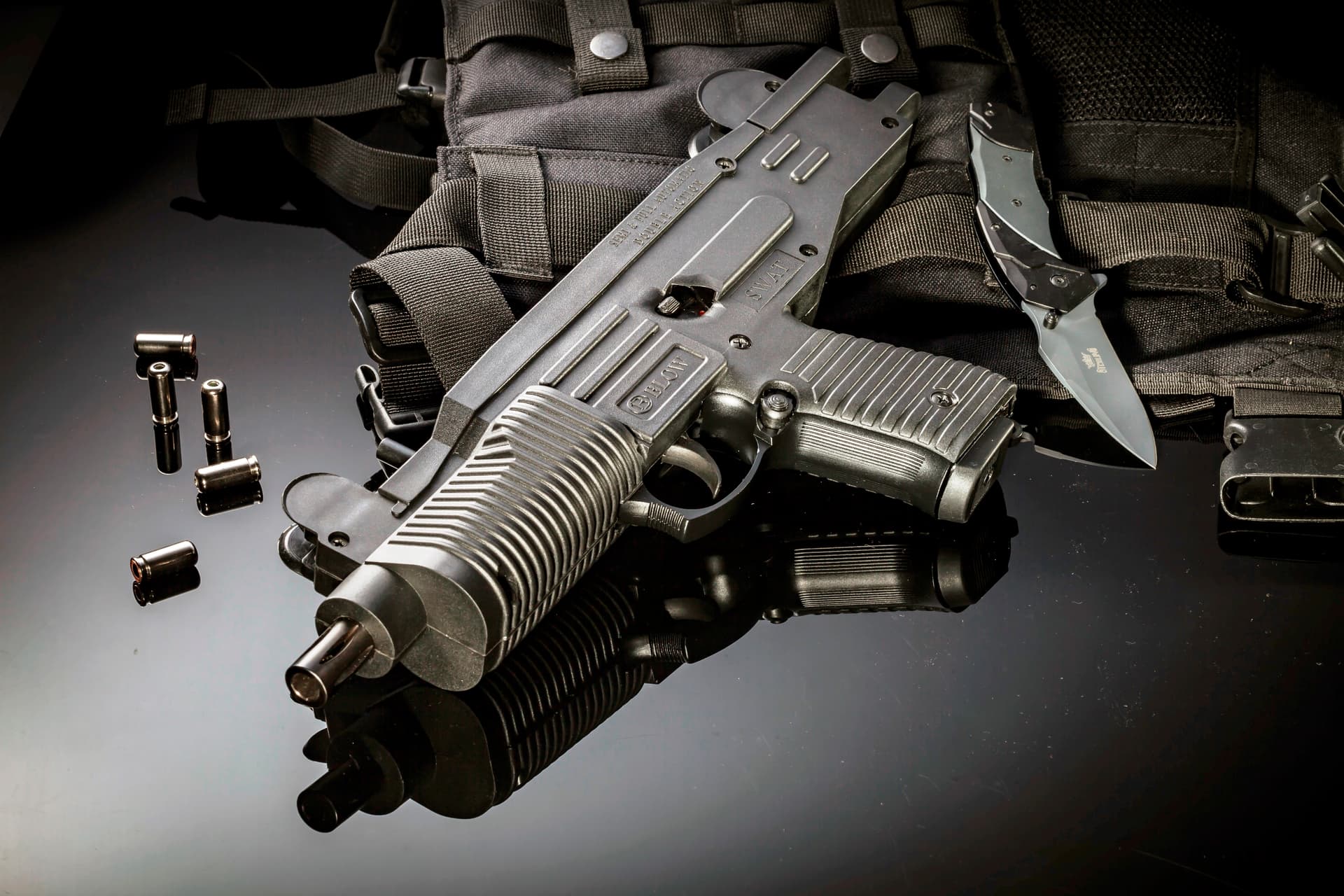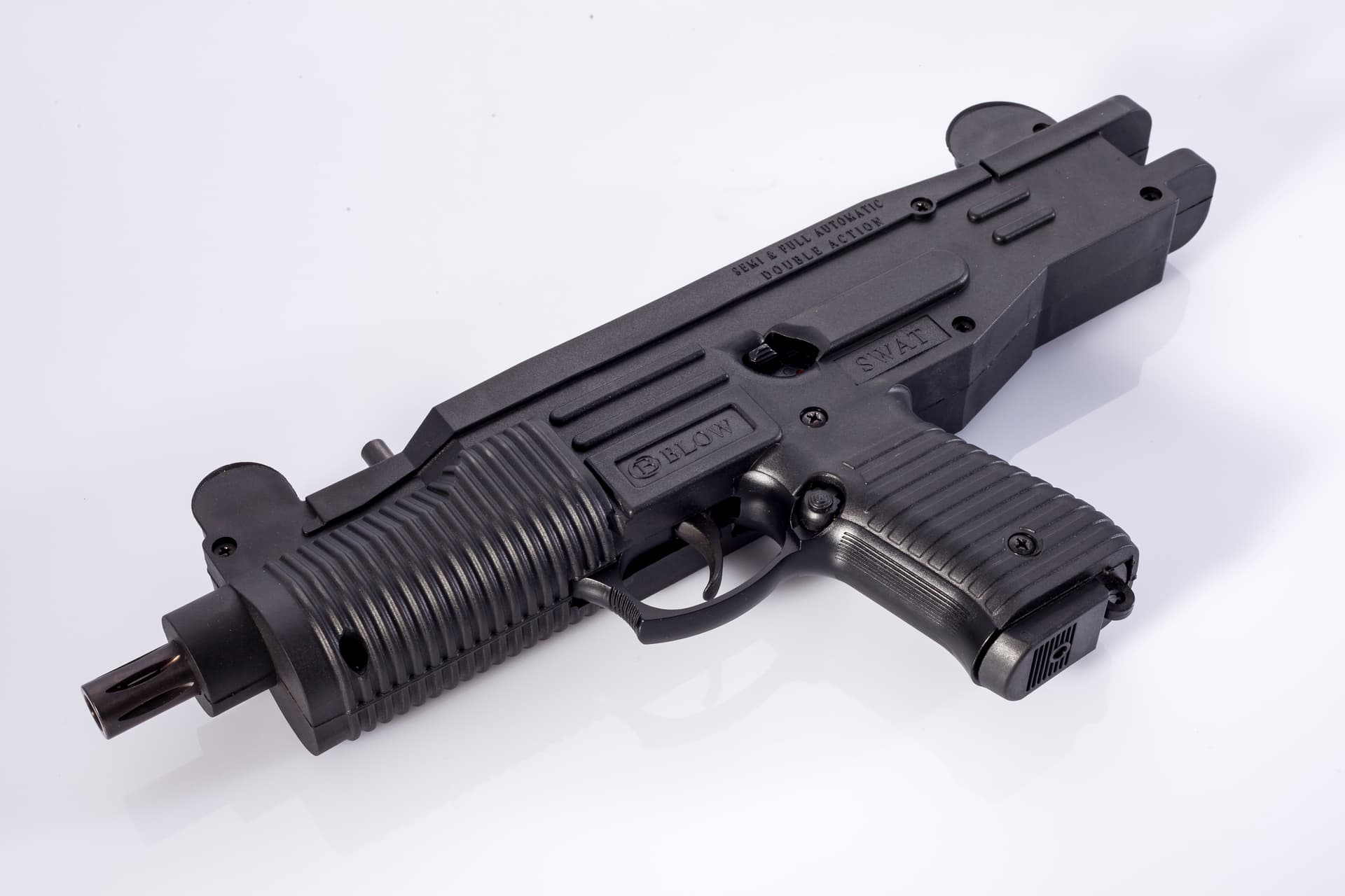 - Das BLOW SWAT Modell arbeitet sowohl halbautomatisch als auch automatisch und überzeugt durch ein kraftvolles, taktisches Design.