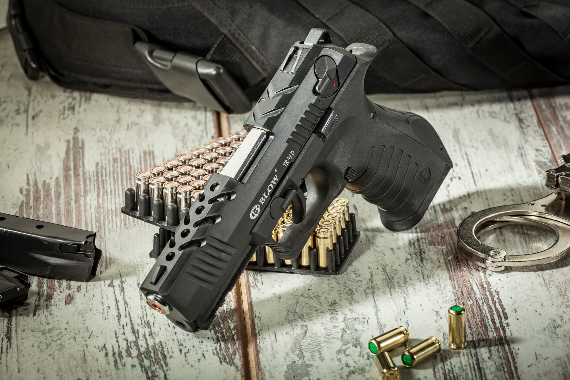 - Die BLOW TR 92 ist eine halbautomatische und automatische Schreckschusspistole, die Leistung mit einer markanten Optik kombiniert.